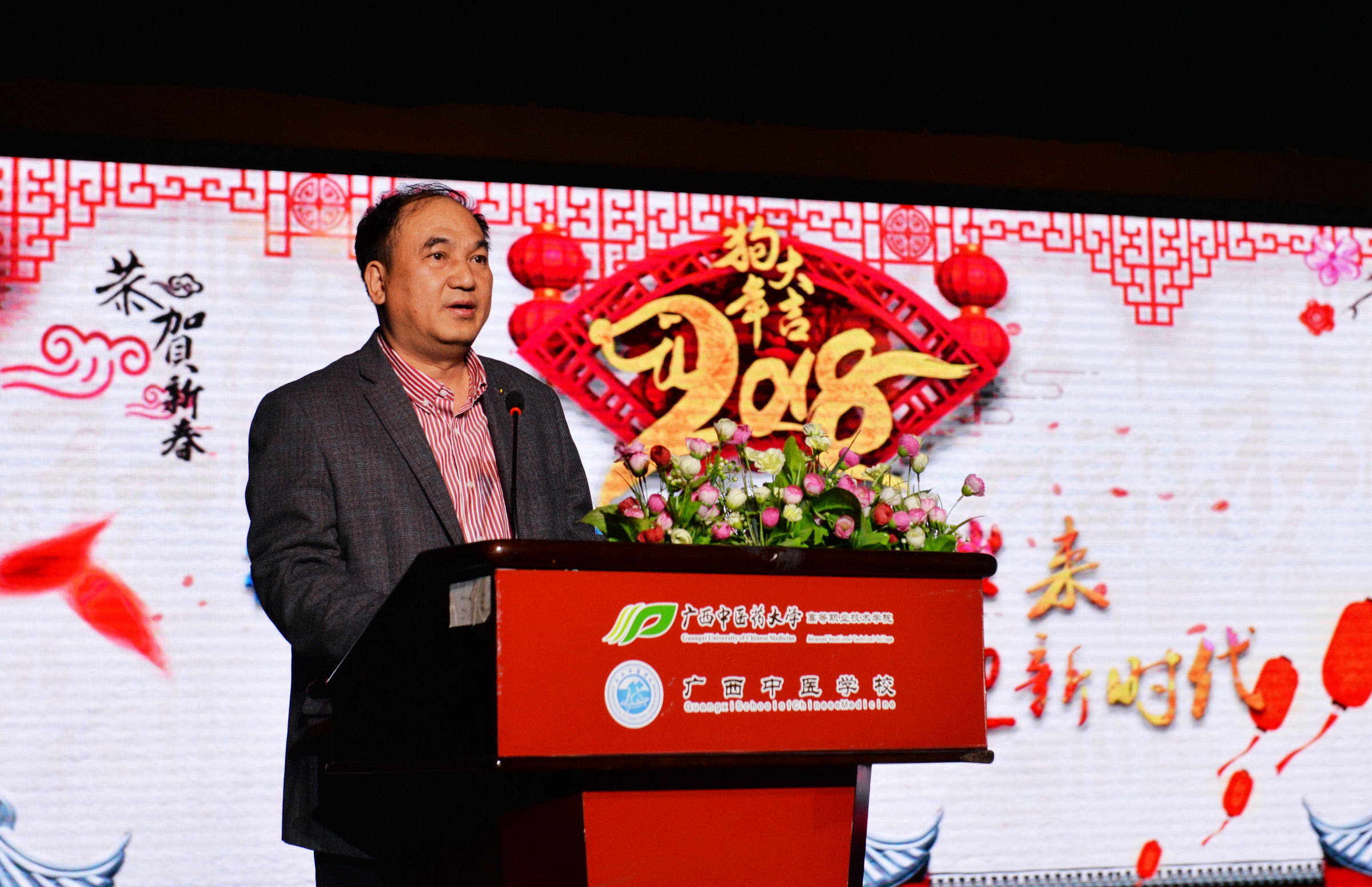 晚会伊始,刘竑清致辞,他简明扼要地回顾了学校一年来取得的骄人成绩,并重点介绍了学校党代会提出的全力推进“三大工程”建设(新校区建设工程、组建广西中医药高等职业技术学院工程、职业教育产教融合建设工程),要求和勉励全体师生紧紧围绕学校的中心工作,在新的一年里锐意进取,务实创新,共建学校美好明天。