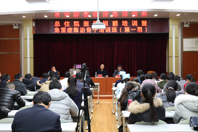 1月8日上午,瑞康医院第一期总住院医师岗前培训暨危重症救治骨干培训班在B座十楼教室举办,医院院长唐友明,副院长韦思尊、陈锋等出席培训班开幕式,来自各临床科室共九十余名医师、护士参与本期培训。