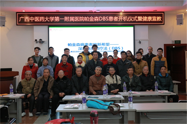 1月8日,一附院脑病科一区在医技楼第二会议室举办帕金森病DBS患者开机仪式暨帕金森病DBS患者健康宣教活动。一附院副院长卢健棋,脑病科一区主任胡跃强,颅脑外科副主任韦可聪及医护人员代表、帕金森病友们参加了本次活动。