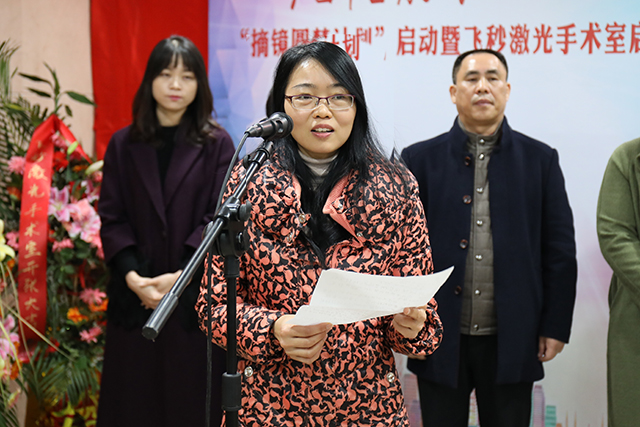 仪式上,视光中心谢祥勇主任作表态发言并介绍“摘镜圆梦计划”,“飞秒第一人”蓝芸以亲身体验分享手术疗效。