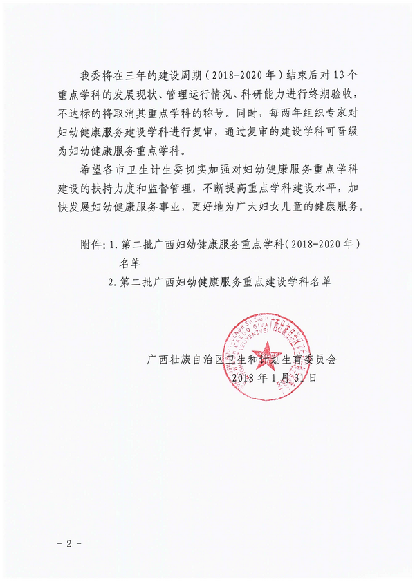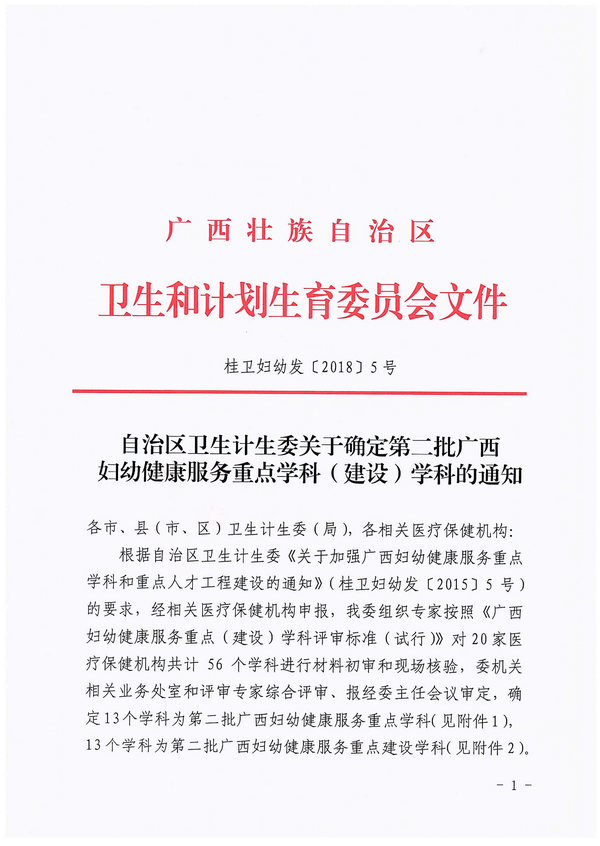 近日,广西壮族自治区卫生和计划生育委员会发布了《自治区卫生计生委关于确定第二批广西妇幼服务重点学科(建设)学科的通知》,一附院“小儿眼科学”、“中医妇科学”分别获评为第二批广西妇幼服务重点学科和重点建设学科。