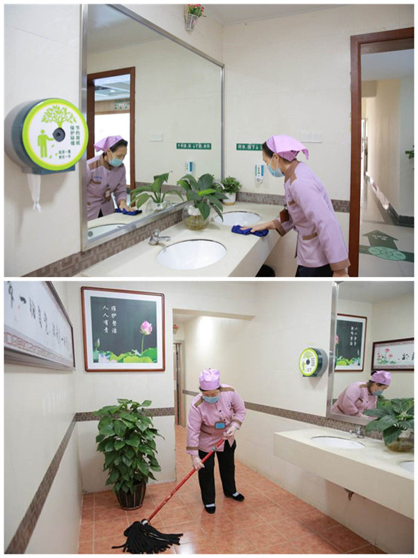通过改造,一附院门诊厕所的品质得到了很大的提升,不仅处处体现了中医院特有的文化内涵和人文关怀,在卫生安全方面,还针对一附院特殊环境,采用拖地 “一房一拖”、抹布“一桌一用一清洁一消毒”的保洁方式,防止病菌扩散。不仅提升了患者如厕体验,更保障了患者的如厕卫生安全。