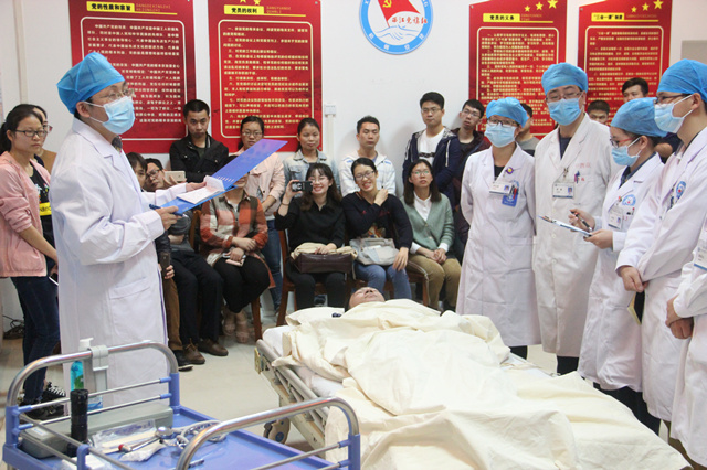 张巍给各教学督导专家组成员、教学秘书、规陪学员等做了中医规范教学查房的示范。