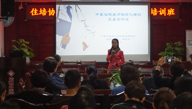 莫湘总结了2016-2017年梧州市中医住培协同基地的工作,并详细介绍了医院目前的情况以及未来发展的目标。