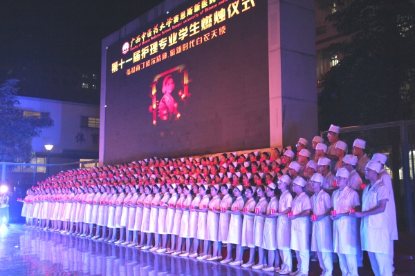 在庄严而又激动人心的音乐声中,学院领导班子以及嘉宾共同为179名同学授帽,她们为护生们戴上象征圣洁的燕尾帽,点燃了象征南丁格尔手中那盏明灯的红烛。同学们在南丁格尔像前庄严宣誓,她们立誓将用爱去守护生命,用行动去践行南丁格尔誓言。在一声声宣誓中,感受到她们对护理事业的那份忠诚与热爱。