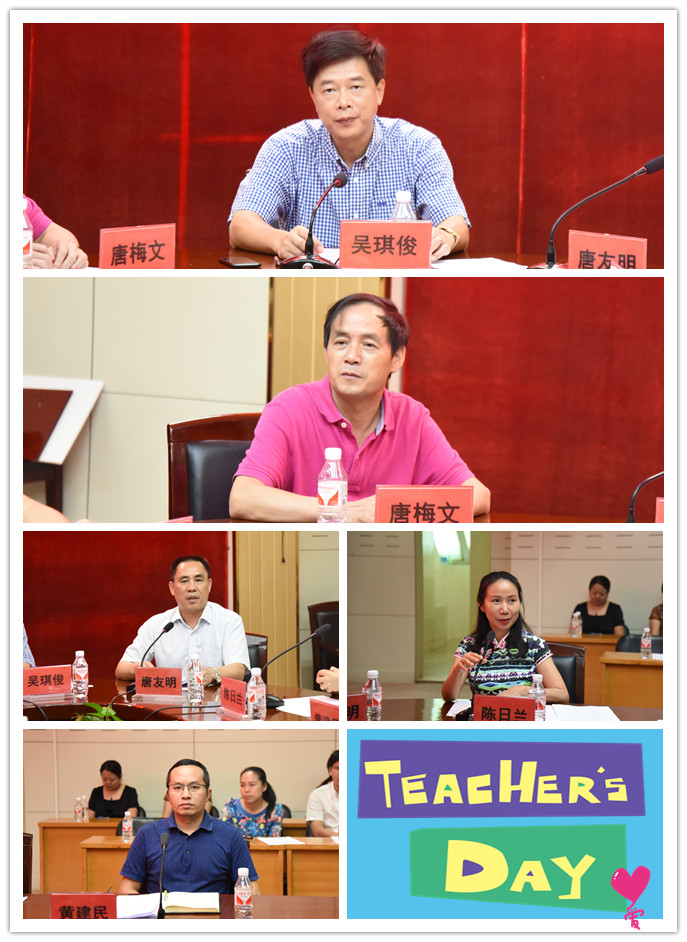 教师代表神经内科二区张永全主任、大骨科及骨脊柱二区刘汝专主任发言,2014级临床医学实习医师莫扬武作为实习生代表发言,2016级规培班班长梁厶允作为规培生代表发言。全部与会人员一起观看了教师节祝福视频。