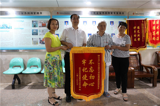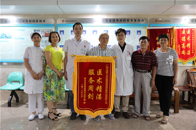 陈仕锦老人将锦旗送到泌尿外科梁泰生主任手中