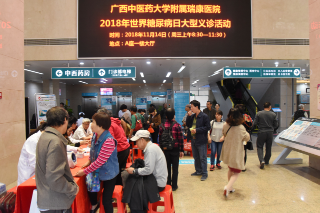今年11月14日是第十二届联合国糖尿病日,主题是“家庭与糖尿病”。当天上午,瑞康医院内分泌科、营养科、眼科、骨科、心脏康复中心在A座大厅联合举办糖尿病义诊活动,呼吁家庭预防和控制糖尿病,改善糖尿病管理水平,提高家庭生活质量和健康水平。