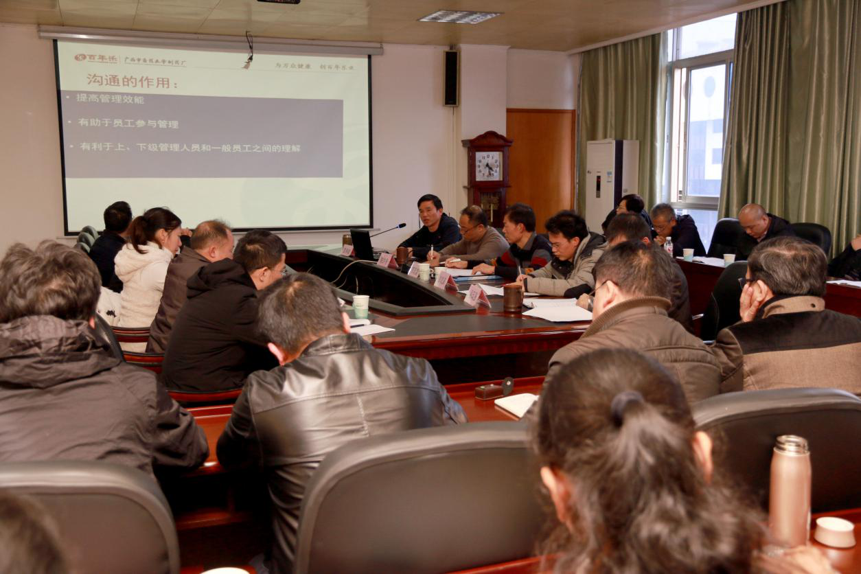 为进一步提升干部队伍的管理水平,加快推进制药厂现代化企业管理步伐,1月3日,制药厂举办中层干部培训会。厂党委书记、厂长何天富,纪委书记彭定基,副厂长陈洪涛、覃明雄、吴玉强,及制药厂全体中层干部参加培训。会议由何天富主持