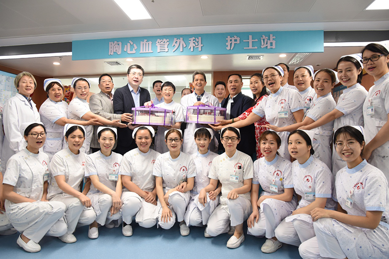 为庆祝第108个国际护士节,5月10日上午,附属瑞康医院院长唐友明,党委书记高宏君,党委副书记、副院长陈日兰,副院长庞刚、陈锋带领护理部主任龙秀红、护理部副主任秦明芳、钟美容、蒋娟及相关职能科室负责人亲切看望慰问了工作在一线的护理工作者。在每一个科室,医院领导都为天使们送上节日蛋糕,并与大家亲切握手,热烈交谈,合影留念。