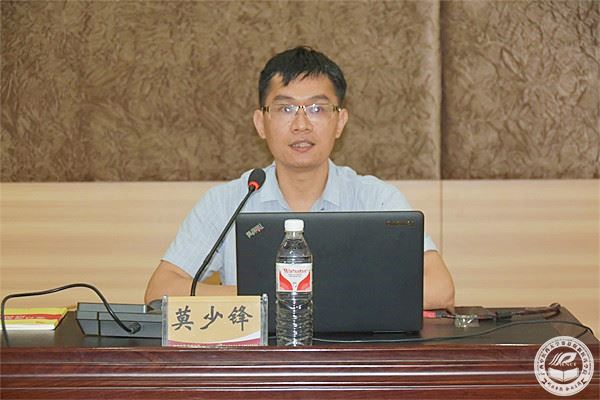 开班仪式后,机关党总支组织委员莫少锋为学员上了第一堂课《发展党员工作的总要求和原则》。