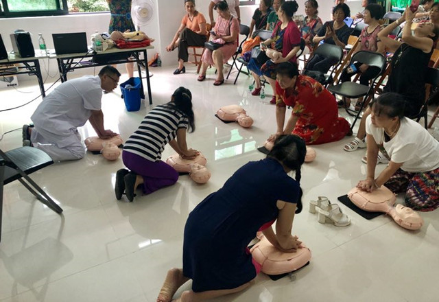 现场指导群众练习心肺复苏