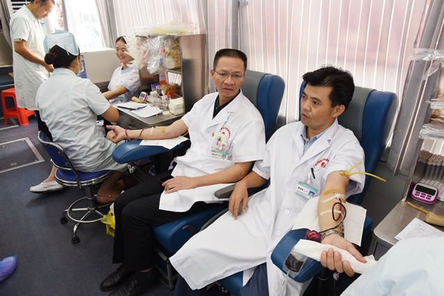 献血现场,医院职工或是同窗共往,或是姊妹相携,有的刚抢修完医疗设备,有的刚下夜班,有的献血后又回到手术台上。常年献血的急诊科主任欧阳国林说:“献血对个人的好处比较多,比如说简单的一个体检,血液上必须合格才能采用,同时促进人体血液新陈代谢,增强免疫力和抵抗力等等,同时也是非常好的爱心传递。”