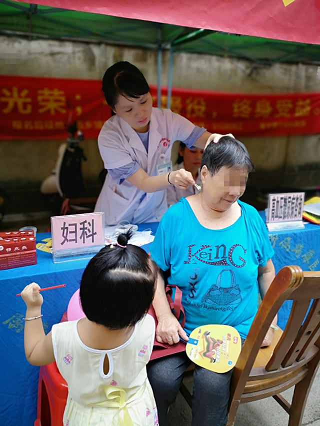 妇科二区黄梅花医师在为患者做治疗