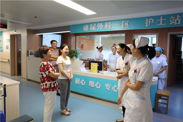 10月8日下午,国庆节收假上班第一天,温暖感人的一幕出现在附属瑞康医院器官移植泌尿外科的医生办公室。来自辽宁鞍山的田女士,带着自己的父母不远千里专程来到医院探望医护人员,感谢医生及护士12年前那一次相遇。刚一进屋,小田一家便一一认出了高宏君书记、梁泰生主任、罗向东医生、梁方芳医生、陆毅护士长……,十分感慨,12年前发生在医患之间的感人点滴也就此聊开。