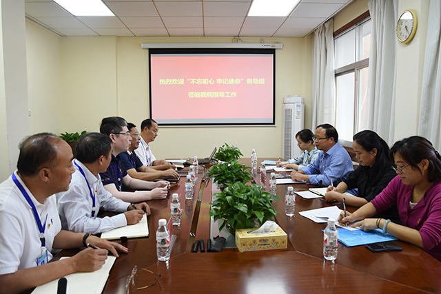 10月15日下午,自治区党委“不忘初心、牢记使命”主题教育领导小组第七巡回指导组,广西大学纪委副书记罗国斌、自治区退役军人培训中心党办主任陈敏在学校纪委书记韦雪芳、党委组织部副处级组织员张艳娟的陪同下到医院进行“不忘初心、牢记使命”主题教育工作督导检查。医院党委书记高宏君,副院长庞刚、韦思尊、陈锋、宋策以及医院主题教育领导小组成员参加座谈会。