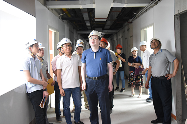 在听取各施工单位、监理单位代表汇报项目建设进度、工作计划及问题反馈后,医院领导一行深入在建当中的院区12层住院综合大楼,考察了中央空调系统、热水系统、电梯系统等重要设备的安装调试以及护士站、病房、会议厅、一楼大厅的装修设计,现场就发现的问题进行协商并提出整改方案,就装修风格、材料选用等做出明确决定。