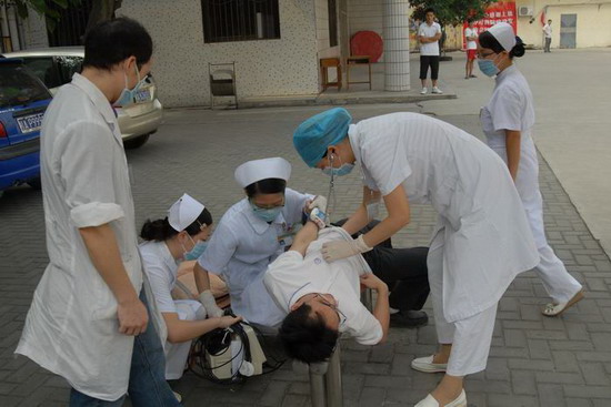 为保证“国庆·中秋”长假期间的医院医疗安全,迎接祖国60华诞,同时为强化医院应对各类突发公共卫生事件的应急反应能力,提高医院突发公共卫生事件医疗卫生救援水平,一附院于9月26日上午进行了以模拟应对大批食物中毒患者为演练对象的突发公共卫生事件的应急处理演练。此次演练由医务部组织,卢健棋副院长为演练总指挥。为保证客观真实反映我院应对各类突发公共卫生事件的应急反应能力,参与考核的专家直到演练前1分钟才知道工作内容。医院突发公共卫生事件应急处理领导小组组长黄贵华院长亲自到现场观看了整个演练过程。