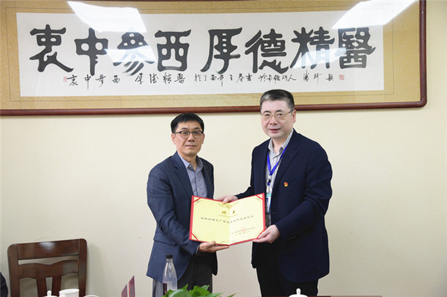 会上,高宏君向杨永广颁发了客座教授聘书,并赠送医院特色宣传纪念牌。