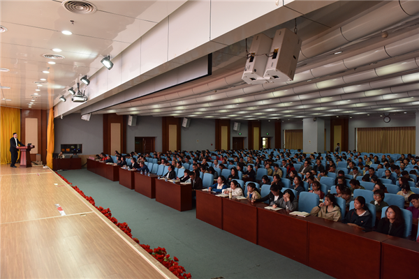 根据学校党委和一附院党委“不忘初心、牢记使命”主题教育总体部署安排,10月28日下午,一附院党委书记桂雄斌以《不忘初心、牢记使命,走好新时代的新长征》为题,结合个人在读书班的学习体会以及近期主题教育调研情况,为一附院广大党员干部讲授专题党课。全体党总支书记、党支部书记、党支部支委、全体中层干部、党员代表、普通职工代表等400余人到场聆听。