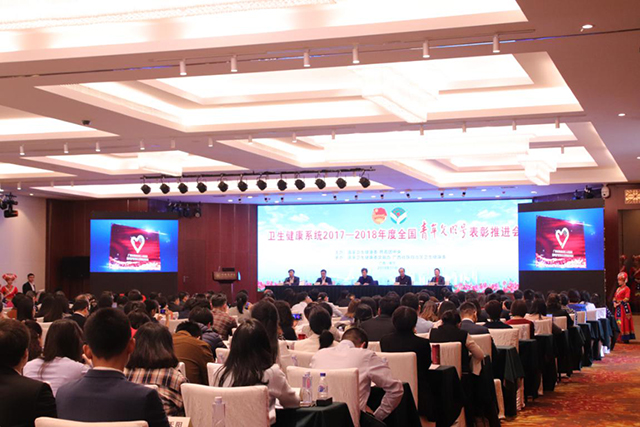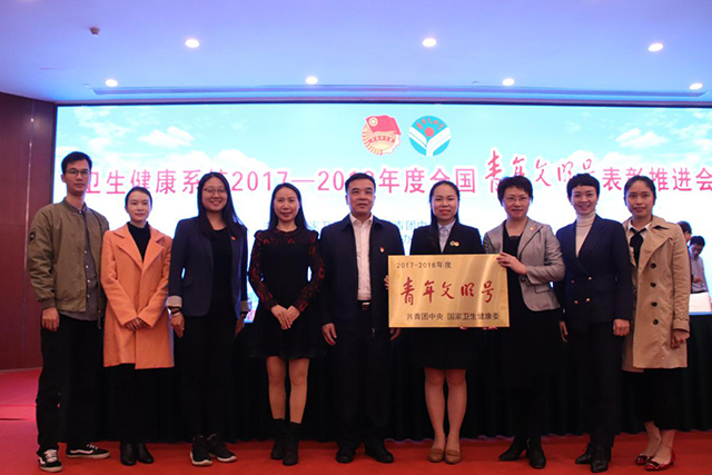 11月21日上午,由国家卫生健康委主办、自治区卫生健康委承办的卫生健康系统2017-2018年度全国青年文明号表彰推进会在南宁市红林大酒店进行。会上,附属瑞康医院产科团队被授予“2017-2018年度全国青年文明号集体”荣誉称号,产科副主任、号长玉华代表广西卫生系统在会上做国家级青年文明号创建经验分享。