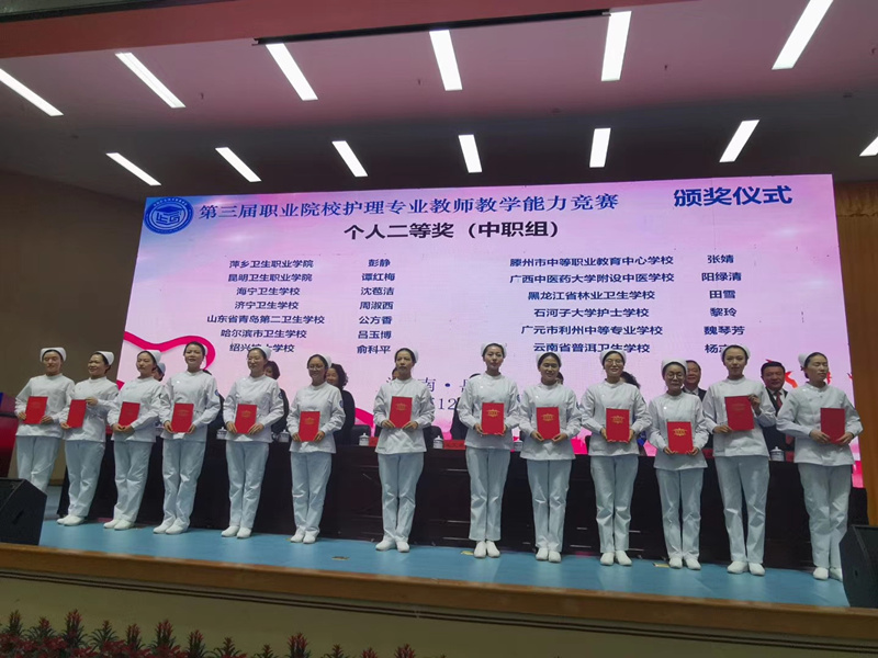 11月28日至30日,为期3天的全国第三届职业院校护理专业教师教学能力大赛在湖南岳阳职业技术学院举行。附设中医学校选送阳绿清老师作为代表参加此次比赛,并荣获中职组个人二等奖。