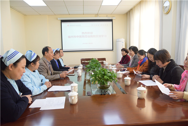 12月4日,福州市中医院护理部主任黄兰珍一行6人来到附属瑞康医院交流学习中医护理特色技术,受到医院副院长陈锋、护理部主任龙秀红及相关人员热情接待。