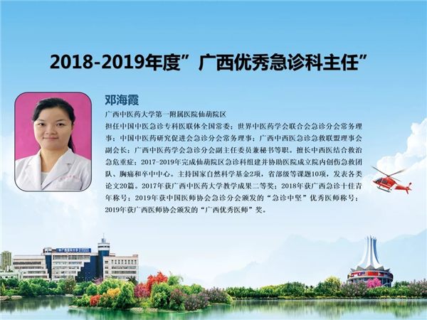 一附院仙葫院区急诊科邓海霞获2018-2019年度“广西优秀急诊科主任”荣誉称号