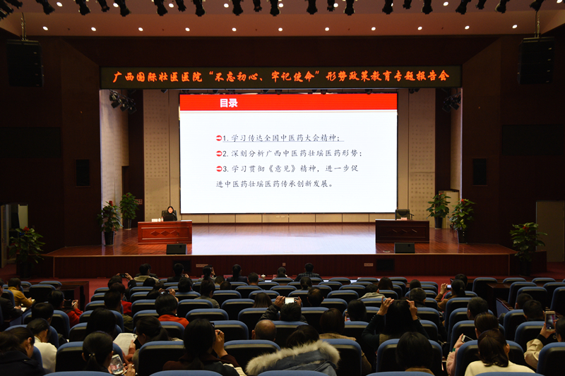 按照医院“不忘初心、牢记使命”主题教育工作安排,12月10日下午,自治区卫生健康委员会党组成员、自治区中医药管理局局长姚春教授受邀为附属国际壮医医院党员干部作《传承精华,守正创新,加强中医药壮瑶医药传承创新发展》为题的形势与政策专题报告。