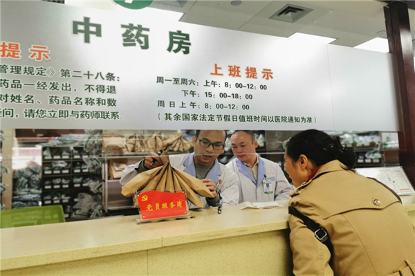 为深入开展“不忘初心、牢记使命”主题教育,将“党建引领药学业务”工作引向深入,充分发挥共产党员先锋模范作用,展示共产党员良好形象,提升党员整体风貌,在党员中营造比学赶帮超的浓厚氛围,推动党建工作与药学业务工作互促共进。一附院仙葫院区党总支第十党支部,在仙葫院区药学部窗口单位开展创建党员示范岗活动。12月10日上午,支部在仙葫院区门诊二楼候药大厅举行创建党员示范岗活动授牌仪式。