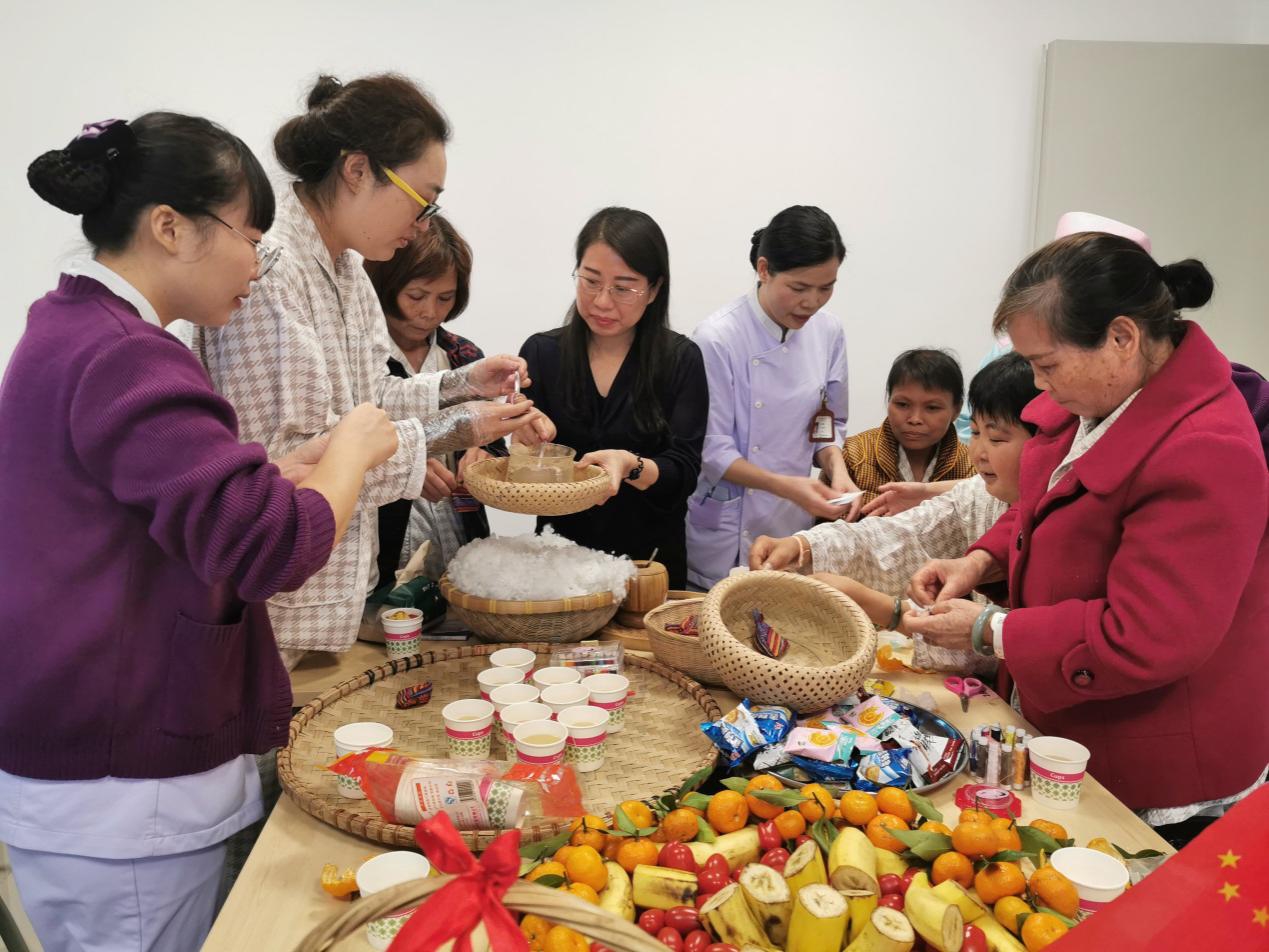 “护士的服务态度温暖,告诉我哪些东西可以吃,哪些不可以吃;教我做绣球,锻炼我手指的关节……”自主题教育开展以来,风湿病科坚持每月召开“听您心声 促我前行”工休座谈会,邀请住院患者及家属参加,在“茶话会”式的轻松氛围中,或围坐闲谈,聊聊最近的喜悦、不惑;或集体动手缝制绣球,通过精细动作锻炼手指关节,或由科室医护人员讲授分享通俗易懂的壮医治未病知识;……细节末梢里向患者及其家属传播健康生活理念,诚恳征求患者意见建议,患者出院满意度持续≧96%。