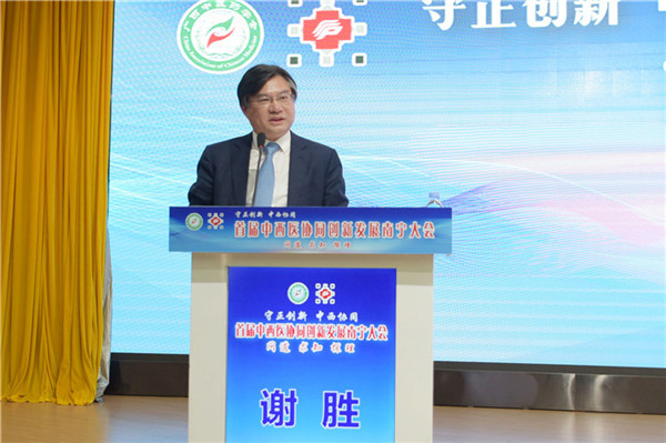 一附院谢胜院长做大会总结发言,他首先感谢与会各位专家不远千里来到南宁,为我们呈现了一个高水平的学术盛宴;谢院长说,传承精华是中医药生存发展的源头活水。守正创新就是要遵循中医药发展规律,就是要坚持中医药原创思维。通过专家们的学术交流,中西医专家的学术思想碰撞,必将为传承发展中医药事业做出积极的贡献,让八桂中医药事业生机无限,清流激荡!
