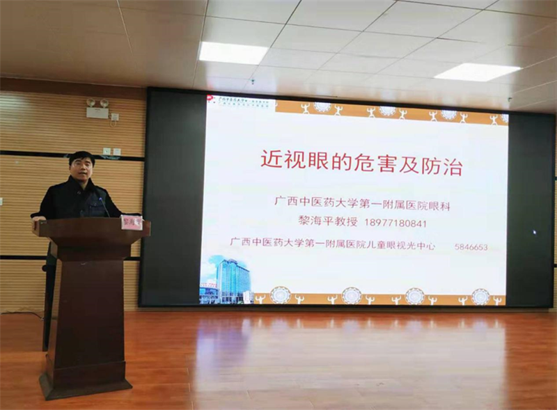 上午10点,黎海平主任为武鸣区各镇卫生院儿童保健人员进行了一场“近视眼的危害与防治”专题讲座,着重强调了高度近视的危害性,就如何做好近视防控工作进行了分析与指导,呼吁医护人员共同努力,为孩子的光明梦保驾护航。