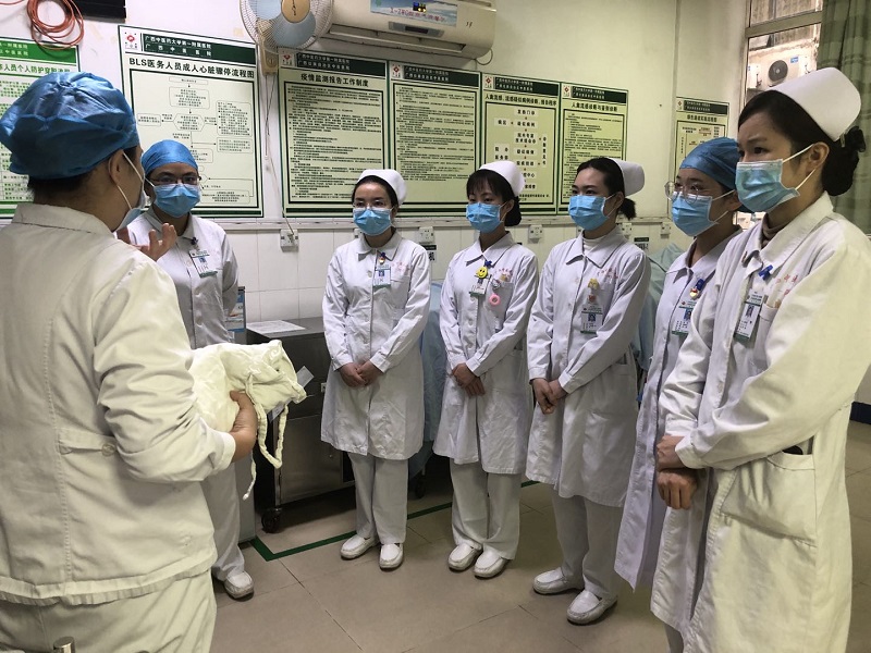为了应对这场没有硝烟的战争,一附院多次召开专题会议全面部署防控工作,尽管急诊科大部分护理人员已经自愿取消了春节休假返回工作岗位,但人力仍然不足。为此,护理部在全院发出自愿支援发热门诊工作的通知,短短两个小时内共有26位同志报名参加。经过综合考量,最终抽调了肿瘤一区农彩芬、肾内科李丽、儿科莫映霞、脾胃病二区邓智伶、心内二区岑思蓓、推拿科张希6位护理人员作为第一批志愿者参与到新型冠状病毒感染的肺炎的战斗中,并在大年三十这个特殊的日子里按时到岗,以实际行动履行守护生命的神圣职责。
