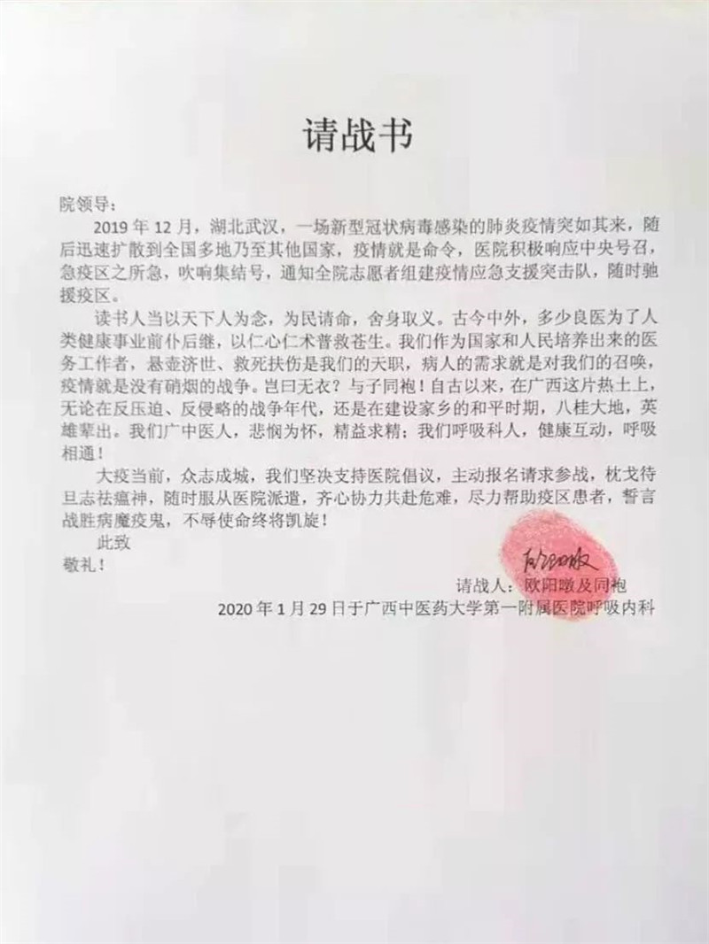 广中医抗“疫”先锋(二)|抗疫情,我请战!广中医千余名医务人员请战候命