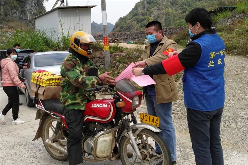 在兰庆同的带领下,联伍村党员干部及工作队队员挨户敲门走访,到村民家中宣传科学防治知识,耐心做好释疑解惑工作,不断提高群众对防控疫情的重视程度,引导群众在疫情防控特殊时期减少外出、杜绝各类群体性聚集活动,工作细致、认真、彻底,确保“村不漏组、组不漏户、户不漏人”。同时,在各屯口设屯级“五个一”检查岗,严格把控人员流动。