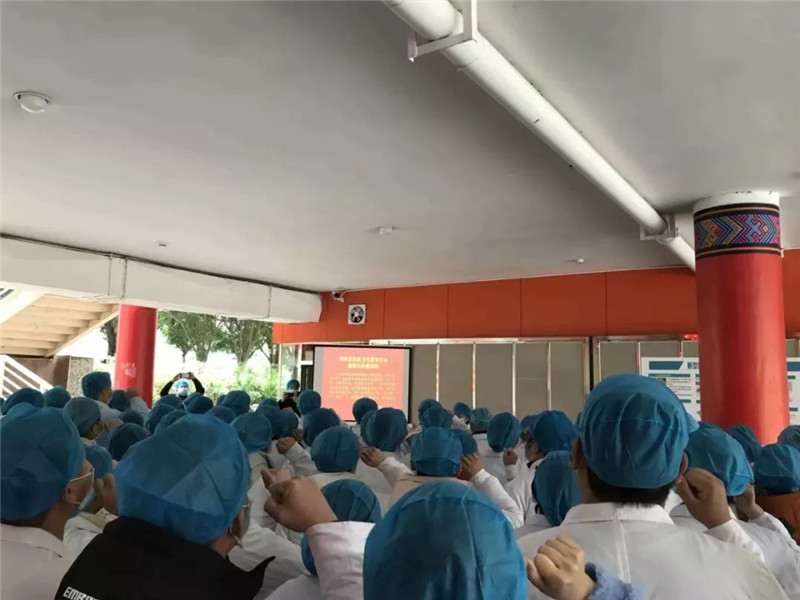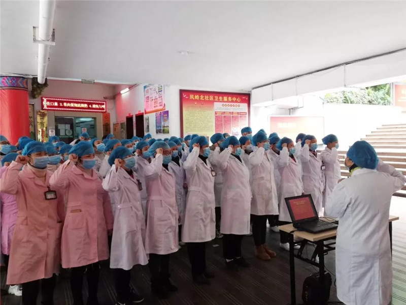1月26日,凤岭北社区卫生服务中心举行抗击新型冠状病毒感染的肺炎疫情誓师大会,全中心110医护人员庄严宣誓:“新型冠状病毒感染的肺炎疫情蔓延,在此危难之际,我将肩负重托奔赴抗击疫情第一线。在此,我郑重承诺,视疫情为命令,一定以科学的态度对待疫情,以严谨的情操对待工作,以严明的纪律对待责任,视人民利益高于一切,齐心协力、团结一心,救死扶伤、不辱使命,直至胜利。”铿锵有力的声音在凤岭北社区卫生服务中心一楼会议室回响。