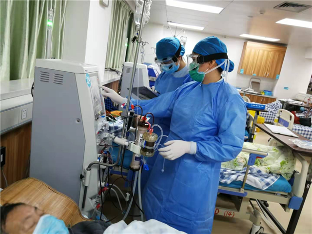 血液透析是一种血液净化技术,他通过将患者体内的血液引流到患者的体外,然后通过有多条空心纤维所构成的透析器,再经过一系列的物质交换将患者体内的代谢废物以及多余水分清除到体外的过程。尿毒症透析患者需要一周三次往返于医院,血液透析中心是个交叉开放环境,规律进行透析治疗的患者们,普遍免疫力低下,属于易感人群,在新型冠状病毒感染的肺炎疫情期间,感染风险陡升,一旦有人发生感染,后果不堪设想。