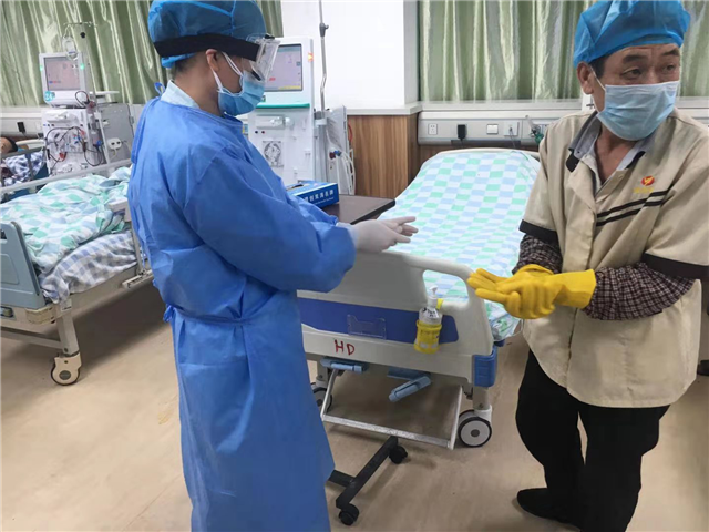 血透医护人员因职责所在,生命相托。为确保透析患者、家属及工作人员的生命安全及健康、保障在新型冠状病毒疫情期间各地透析治疗有序、顺利、安全的进行,在院领导及科主任、护士长的带领下团结协作,面对新冠状病毒疫情,快速反应,根据现行国家标准、行业标准、团体标准和近期国家卫生与健康委员会针对新型冠状病毒不断推出的文件和指南,进行了疫情期间血液净化室对于疫情防控切实可行的具体措施,工作有条不紊。