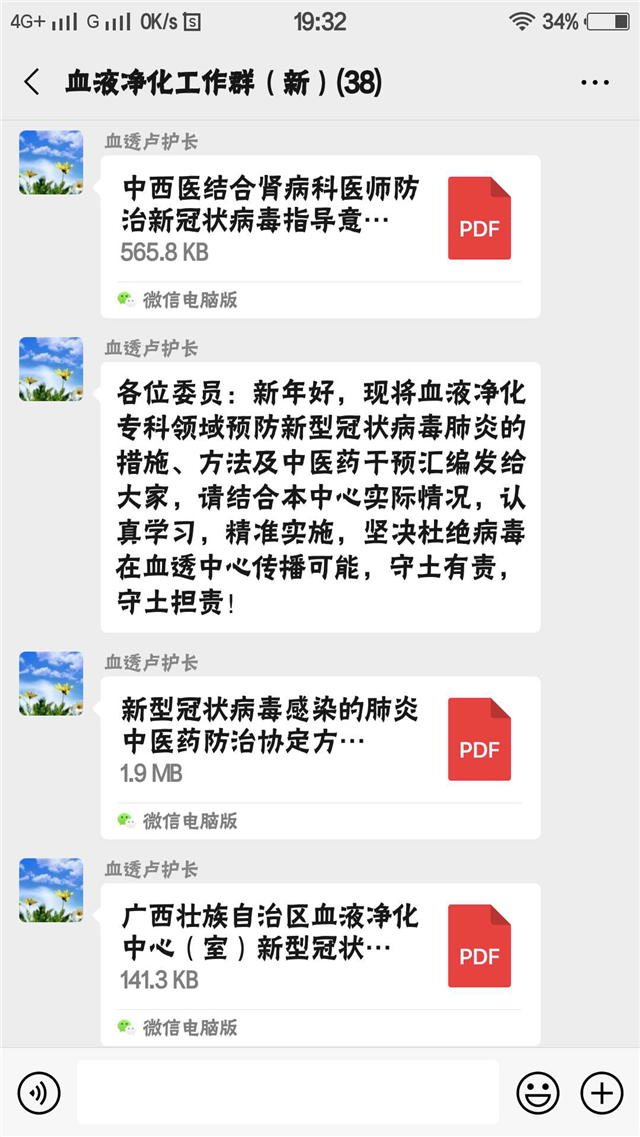 1月21日开始,中心全面对透析患者进行排查,尤其调查患者有无与疫区人员接触史,并开始严格管理透析中心,要求患者每天在家里自行测量体温,进入中心透析时全部测量体温并记录。对疑似患者全部送到发热门诊进行筛选。同时,凡是疑似患者或确诊透析患者均由定点医院收治隔离,进行专门床旁透析。中心还反复强调透析患者无特殊情况不能更换透析单位。对于仅需要隔离的透析患者,中心通过协调,专门准备了适合隔离的单元,对疫情防控起了重要作用。