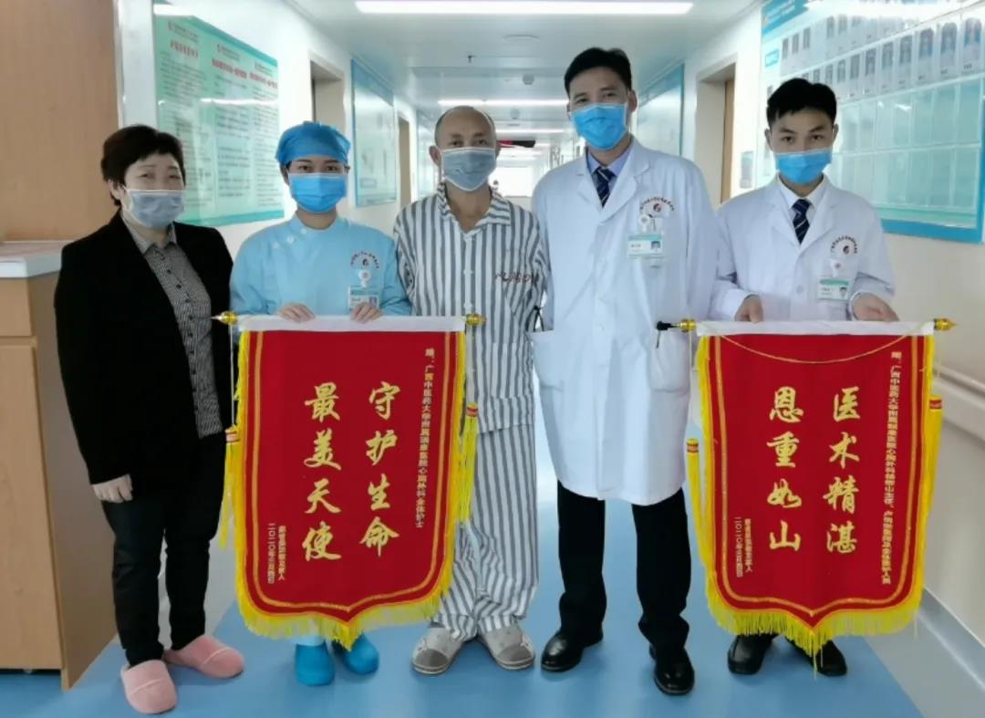 转危为安后,吴大哥一家对医护团队感激不已,拉着他们的手说,感谢赋予他第二次生命。经过一个多月的调理,目前他已经顺利出院,在出院前,将锦旗送到了医护人员的手中。