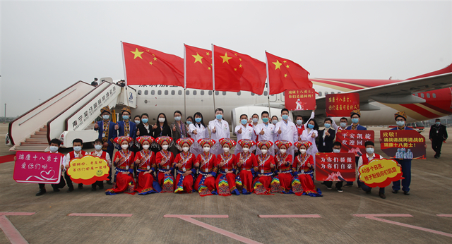 西辞黄鹤楼,平安归故里。今天,广西第四批援助湖北省抗疫医疗队凯旋!“阳春布德泽,万物生光辉”,从2月15日到3月29日,广西第四批援助湖北省抗疫医疗队经历了整整45天的奋力拼搏, 圆满完成党和人民交给的医疗救治任务。我们的瑞康“十八勇士”回家了!