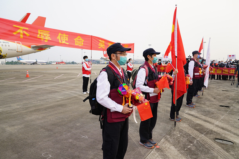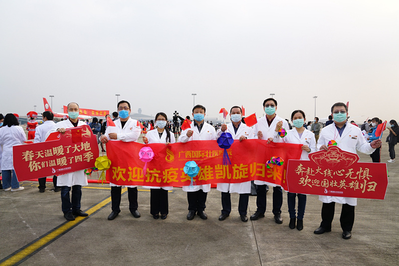 4月7日下午,中国政府赴柬埔寨抗疫医疗专家组一行7人经过15天的奋战,圆满完成了既定援助目标任务,于17点30分到达南宁吴圩国际机场。广西国际壮医医院大内科副主任、脑病科主任,主任医师王凯华随国家医疗专家组返回,院党委书记秦祖杰,院领导罗艺徽、黄国东、李铭、唐盛军到机场迎接。