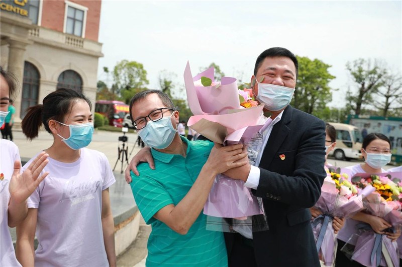 人间四月,春光似锦。4月12日,一附院驰援湖北武汉医疗队19名队员结束了14天的集中休整医学观察期,回到家人和同事的怀抱!一附院党委书记桂雄斌、副院长卢健棋及相关职能部门负责人到定点酒店迎接队员们回家。