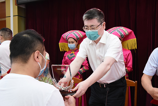 会上,陈日兰宣读《关于给予唐晓等22名援鄂医疗队队员表彰及记功的决定》,院领导为全体医疗队员颁发纪念牌和荣誉证书。