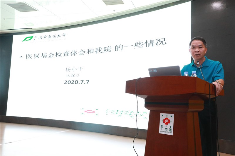 目前,广西区医保局从1月份开始已经检查区内各地市定点医疗机构,后因疫情中断,5月份开始重启。一附院医保办主任杨小平作为区保检查组成员之一,结合医保基金检查和一附院的一些情况谈了自己的体会,从医保基金检查组成等多方面进行说明;同时指出了2020年医保工作重点,一是打击欺诈骗保工作常态化进行,二是规范使用医保基金,三是适应智能监控规则。