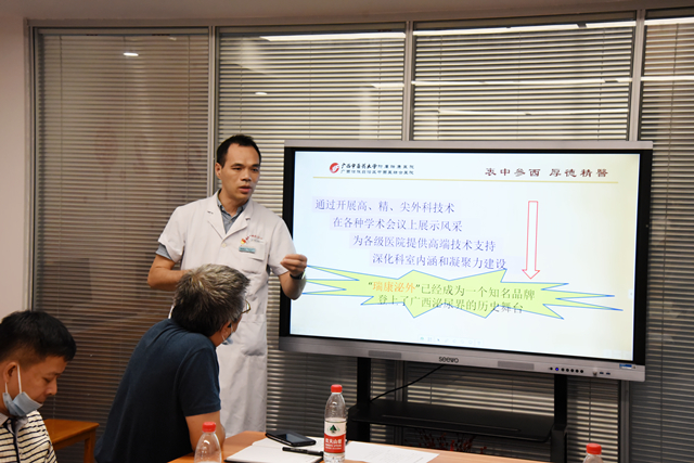 各行政职能科室负责人首先总结在查房过程中发现的亮点,提出存在的问题和不足,并就改进方式、方法与大家进行讨论。随后,泌尿外科主任梁泰生作科室工作汇报,他从科室人员构成、技术亮点、学科建设、未来发展规划等方面将科室基本情况一一作详细说明。