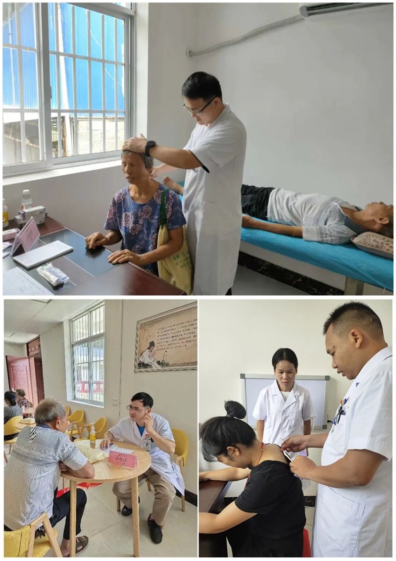 9月17日上午,一附院轮值村医团队第一批党员专家,肝胆外科李敏朋、康复医学科韦业、心血管一区梁逸强、中医治未病中心卢栋明按时到达联伍村,一入村就马不停蹄地为已经排号等候的村民开始诊疗。期间,前来就诊的村民络绎不绝。一附院专家共为50余名患有肝内胆管结石、高血压、腰椎间盘突出、慢性胃炎等不同疾病的村民提供了诊疗服务并开展了健康宣教。当地村民在经过诊疗后,纷纷对一附院专家竖起了大拇指,“大石山区来了‘新’医生真是太好了,我们都不用跑去县里看病了!”专家们在诊疗期间还向村医传授了经络穴位及针灸推拿中医技法。联伍村村医赵海清这一天收获很大,她说,通过短短的一天的学习,我们对经络、穴位、针灸等经典的中医知识有了初步的了解,学会了用针灸治疗简单的基础疾病,感谢中医一附院专家们的到来。