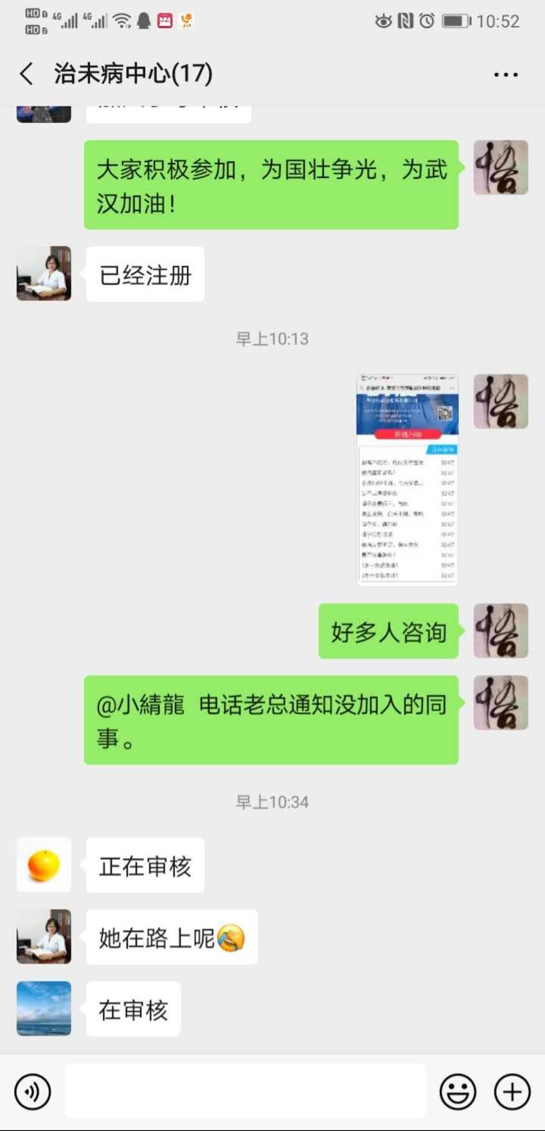 个人的力量总是有限的,为了帮助更多的人,王强主任在治未病中心和健康管理中心科室微信群内号召全科室医生加入到志愿者行列。