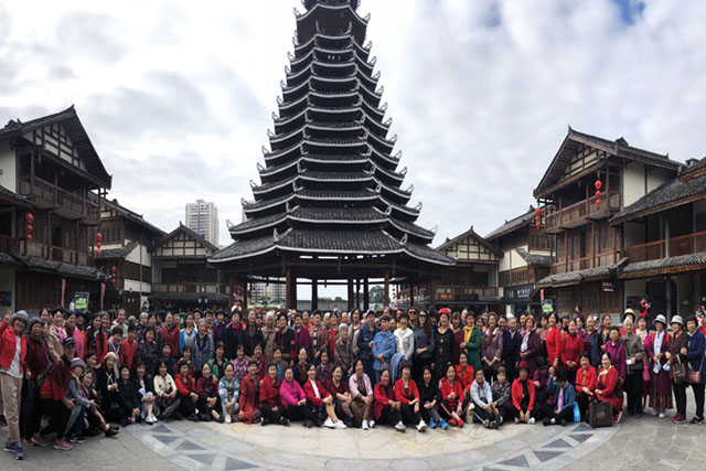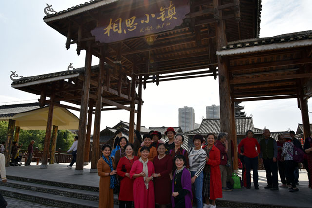 相思小镇是由56栋民族风情建筑组成的文化小镇,寓意中国56个民族大团结。小镇环境优美,楼阁错落有致,宁静而迷人。一入小镇,大家禁不住喜欢上了这个美丽的地方,或穿行于堂前楼榭驻足留影,或漫步湖边栈道拥抱温暖阳光,或三五成群围桌而坐侃侃而谈,或慢步于绿叶红花之中,欣赏园中秋色。大家兴致勃勃,精神矍铄,谈笑风生,相互问候。老朋友久不见面,有说不完的话道不完的情,增进了彼此友谊。